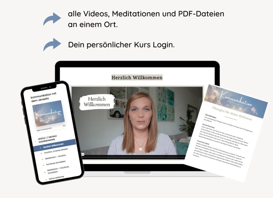 In diesem Online Kurs * lernst Du deine medialen Fähigkeiten kennen und wie du diese trainieren kannst, um einen Jenseitskontakt zu deinen geliebten Verstorbenen herstellen zu können.