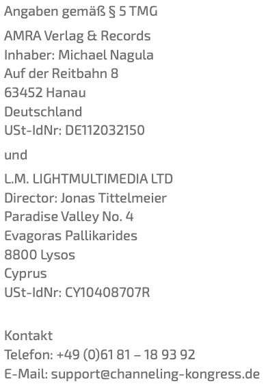 Der Nutzung von im Rahmen der Impressumspflicht veröffentlichten Kontaktdaten zur Übersendung von nicht ausdrücklich angeforderter Werbung und Informationsmaterialien wird hiermit widersprochen. Die Betreiber der Seiten behalten sich ausdrücklich rechtliche Schritte im Falle der unverlangten Zusendung von Werbeinformationen, etwa durch Spam-E-Mails, vor.